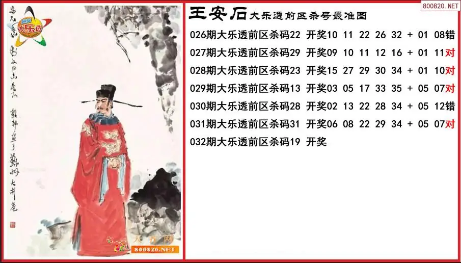 王安石2026032期大乐透前区杀号最准图-原创