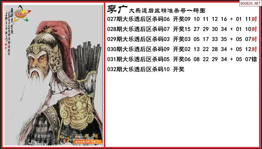 李广2026032期大乐透后区精准杀号一码图-原创