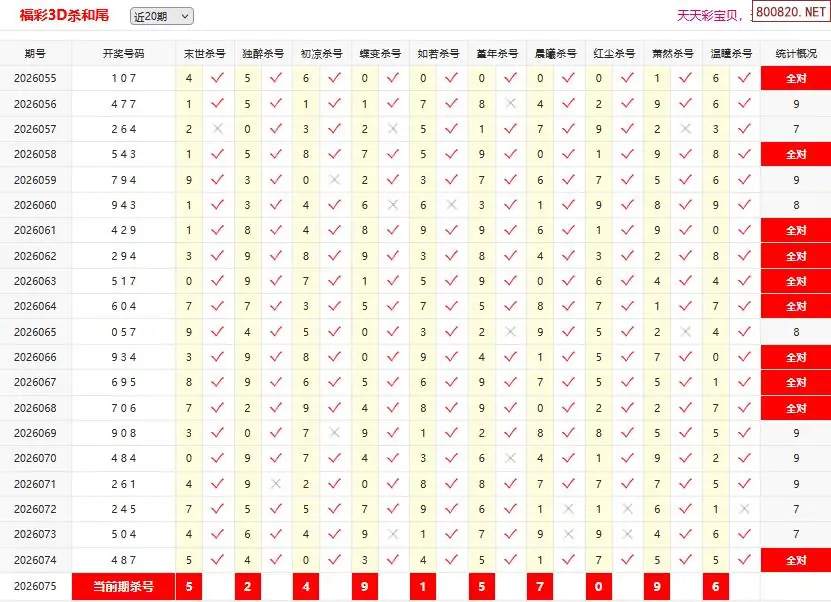 26075期彩宝贝福彩3D杀和尾