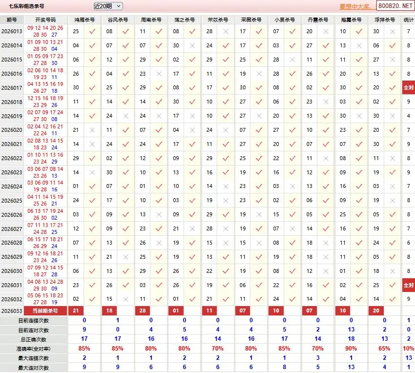 2026033期澳客七乐彩专家杀号