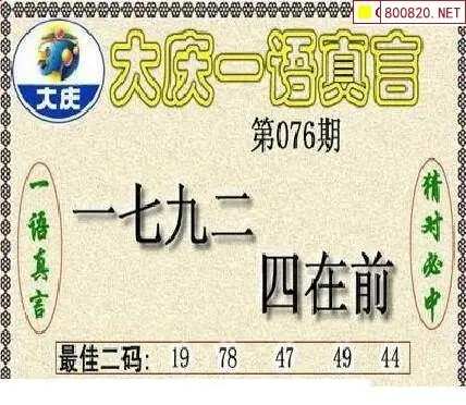 大庆图26076期大庆五码+一语真言黑胆3d图谜