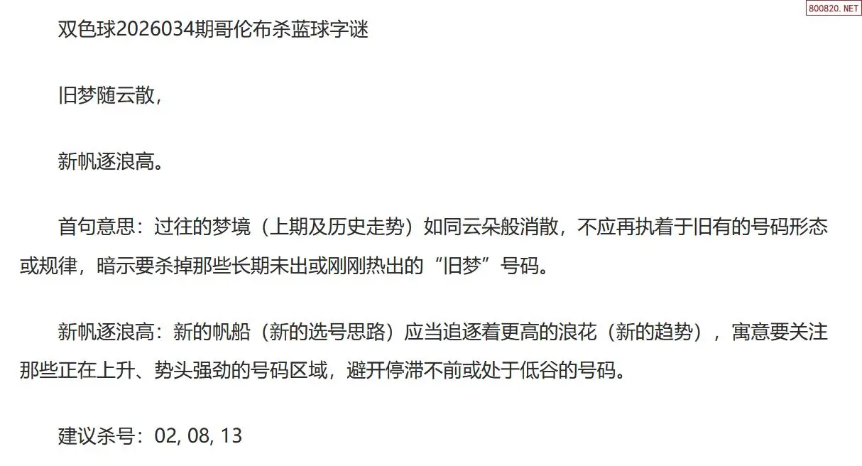 双色球第26034期哥伦布今天一句杀蓝球