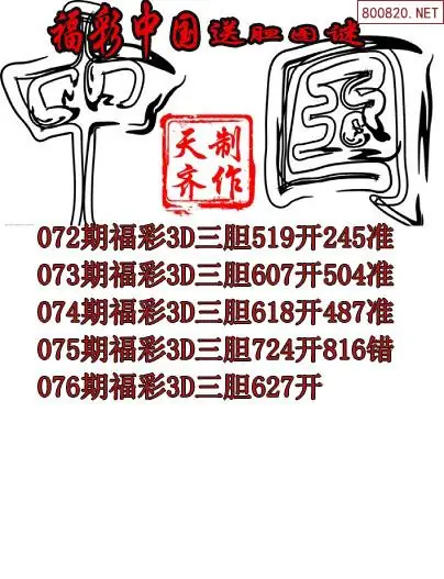 2026076期福彩中国福彩3d胆码图谜