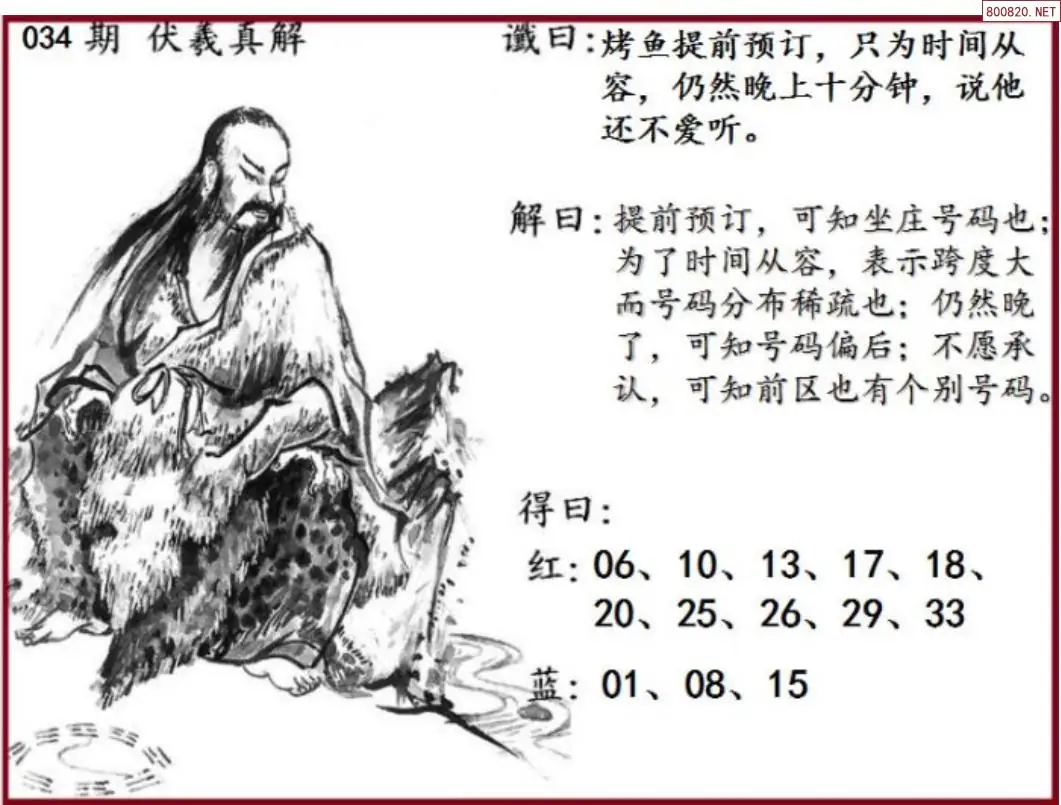 26年034期双色球伏羲真解图谜