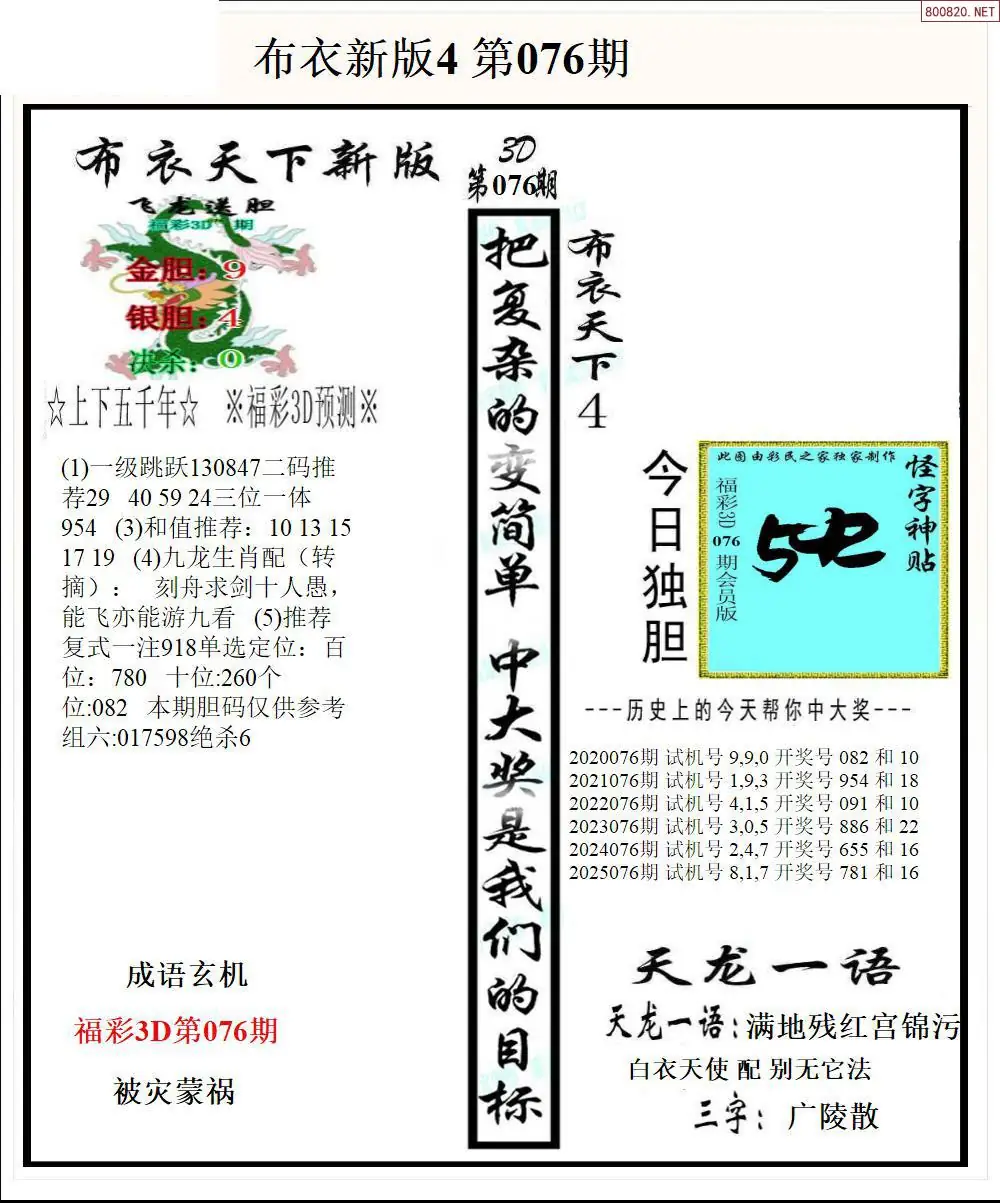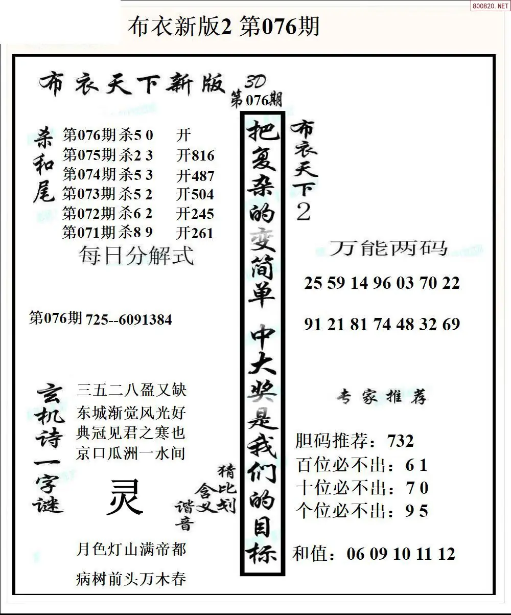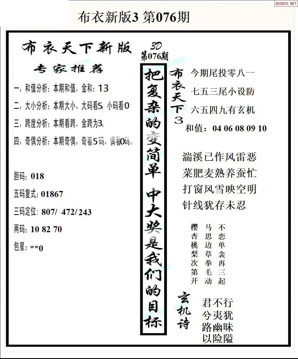26076期新版3d布衣天下1234