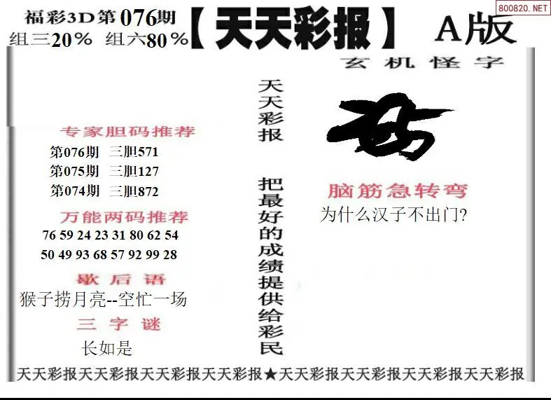 26076期福彩3D天天彩报A版 天天彩报B版