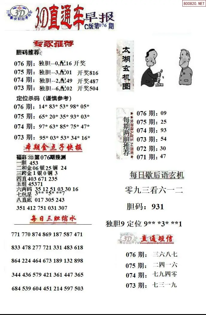 26年076期福彩3D直通车早报ABCD版