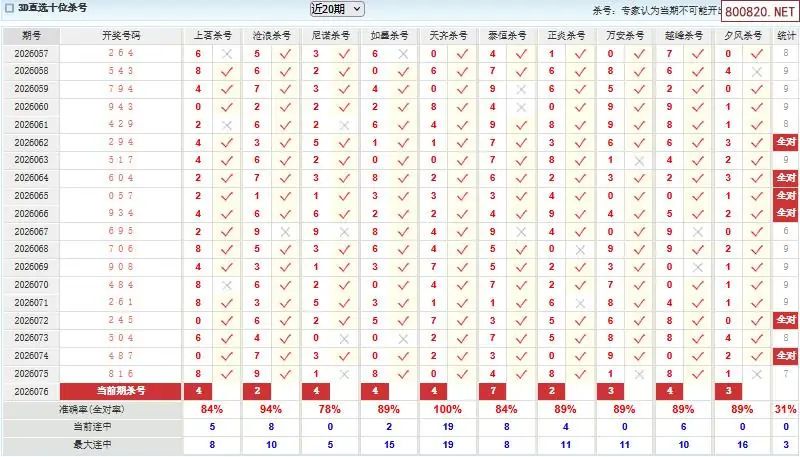 福彩3d26年076期澳客专家杀直选号码