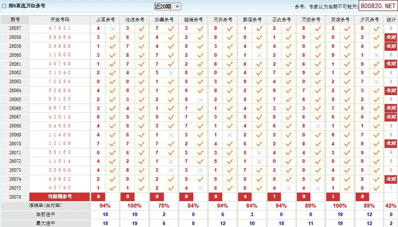 澳客彩票26年体彩P5076期十大大专家杀号