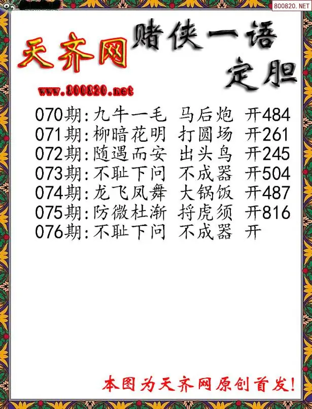 076期[彩3D赌侠一句定三码字图谜