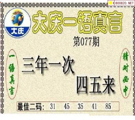 大庆图26077期大庆五码+一语真言黑胆3d图谜