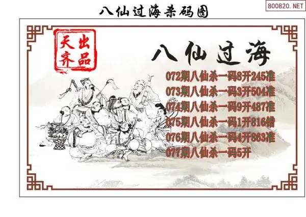 26077期八仙过海福彩3d杀码图谜-天齐原创