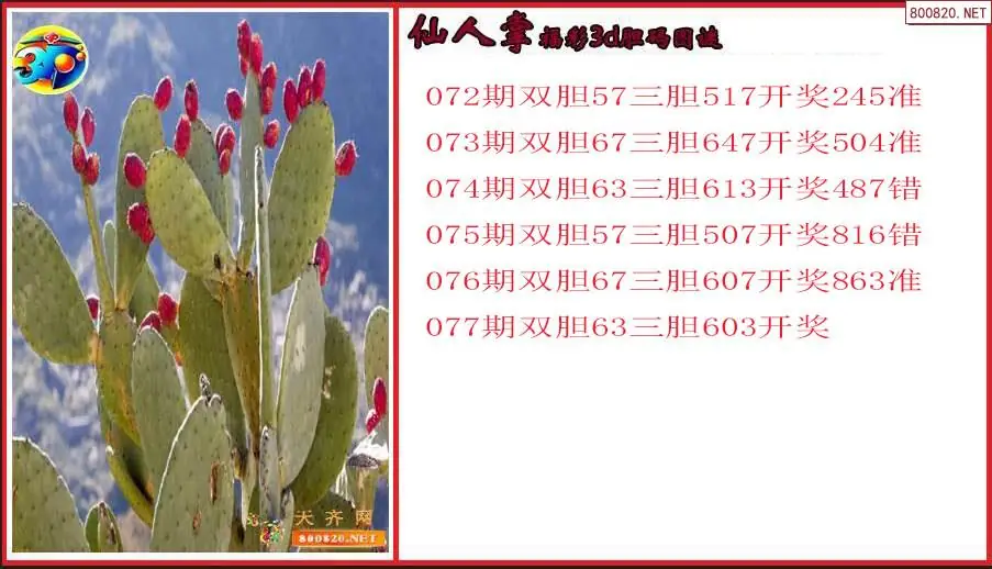 仙人掌2026077期福彩3d胆码图谜(原创)