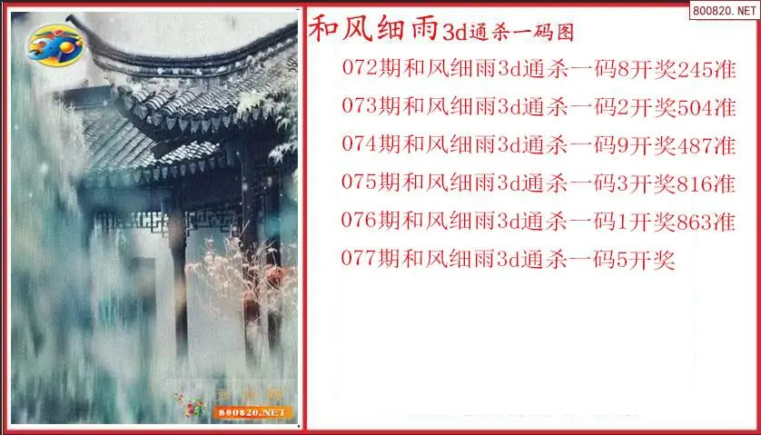 和风细雨2026077期3D通杀一码图(原创)