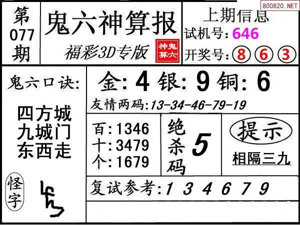 鬼六图26077期鬼六神算报+鬼六胆码图迷