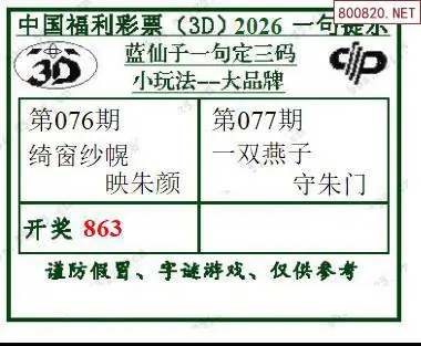 2026077期蓝仙子一句定三码3d图谜