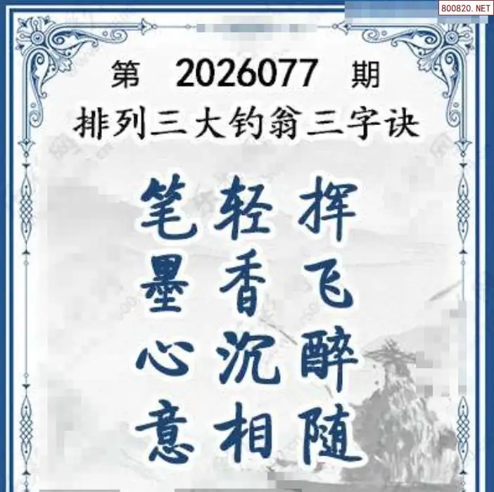 26年077期体彩p3大钓翁三字诀