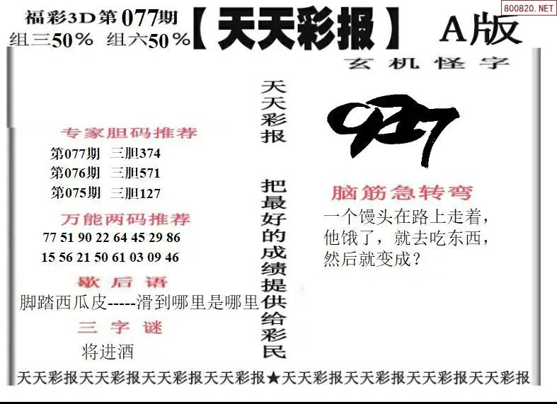 26077期福彩3D天天彩报A版 天天彩报B版