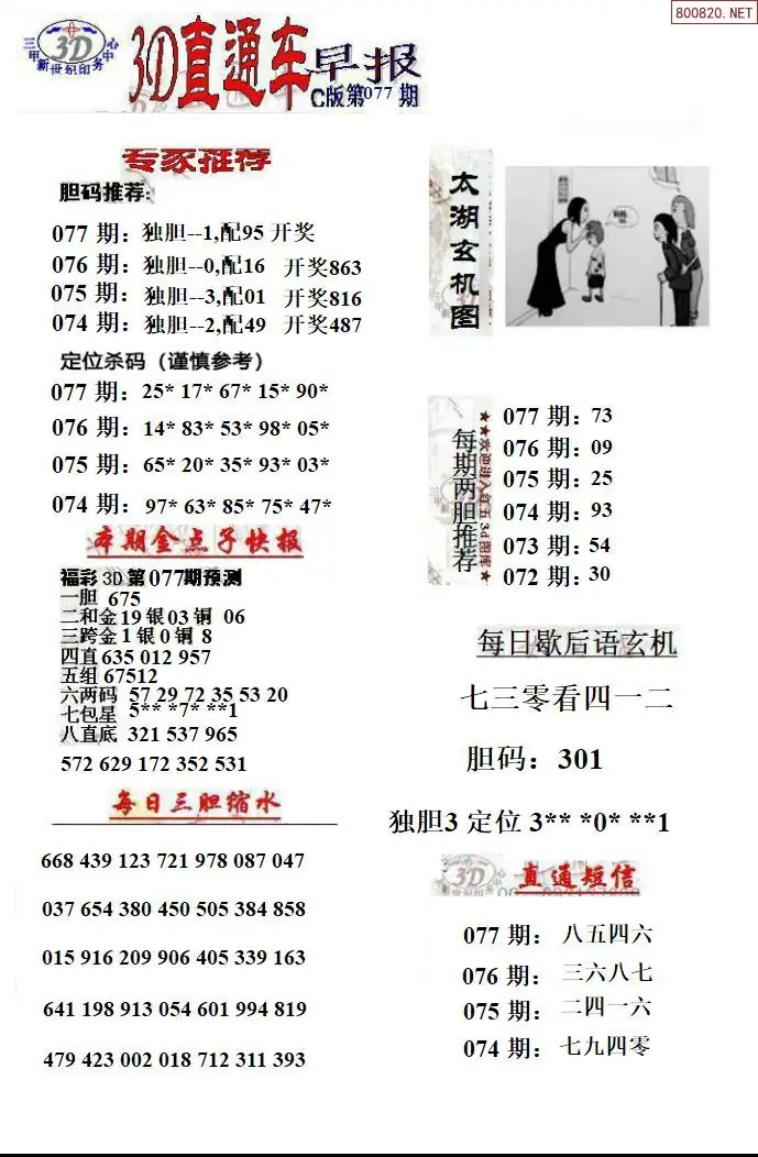 26年077期福彩3D直通车早报ABCD版