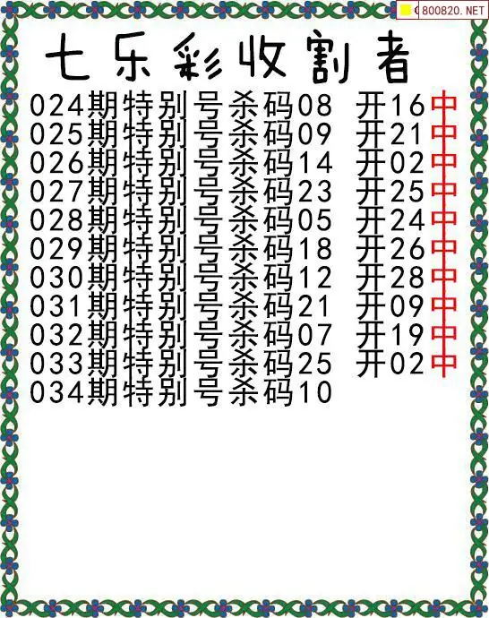 七乐彩26年034期收割者特别号杀码图迷