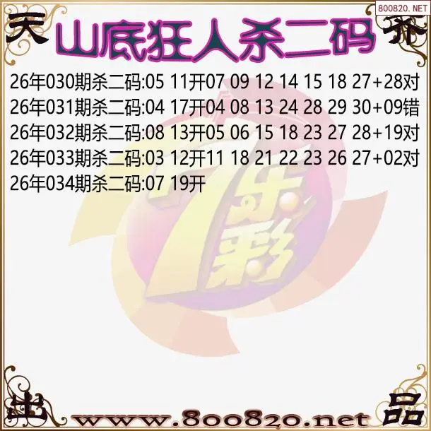 山底狂人26年034期七乐彩杀号图谜