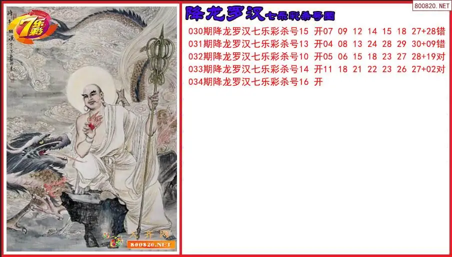 七乐彩2026034期降龙罗汉杀号图