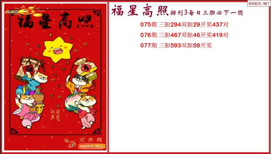 福星高照2026077期排列3每日三胆必下一图(原创)