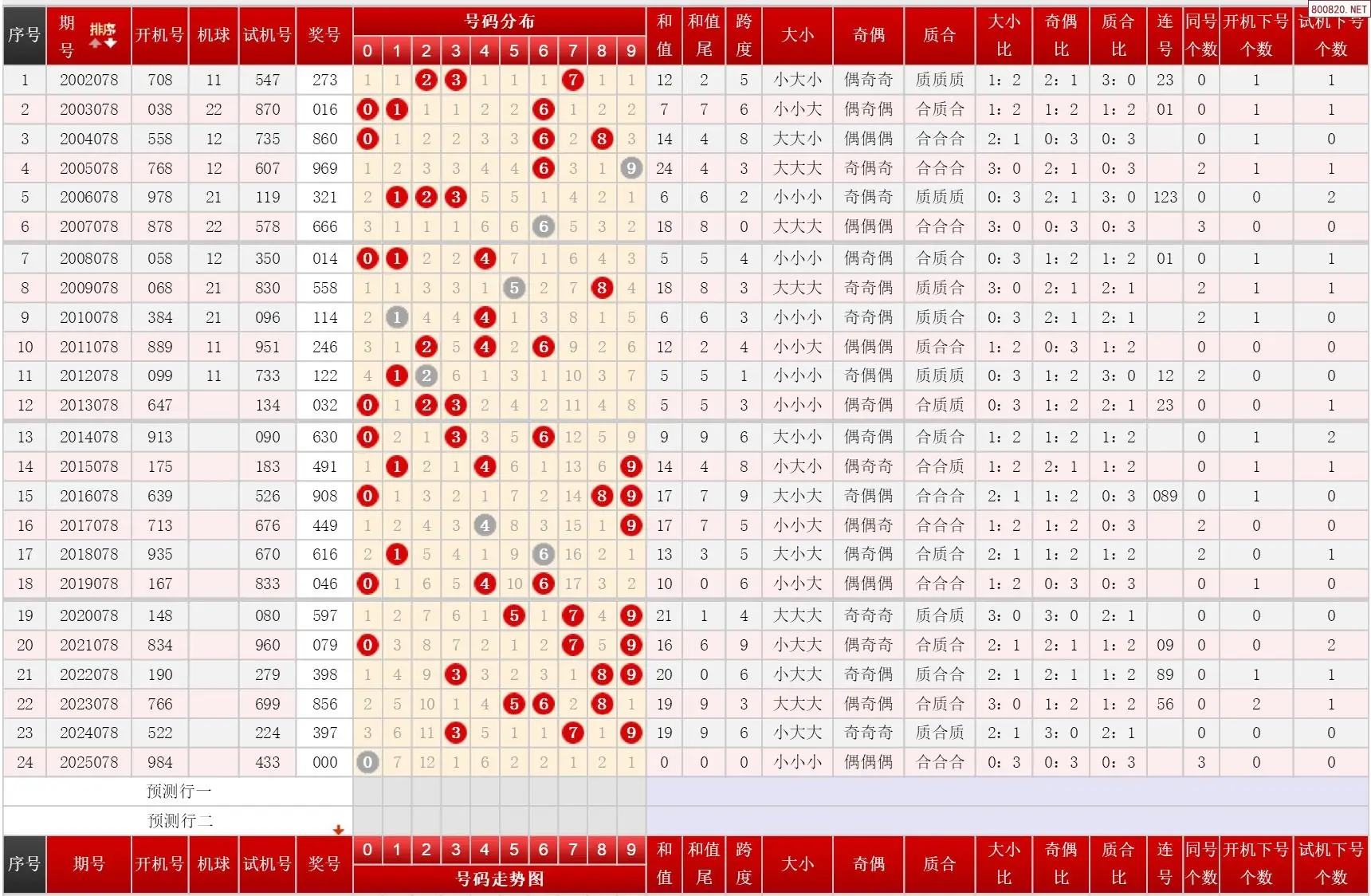 078期福彩3D历史同期对比图表+近期走势图分析