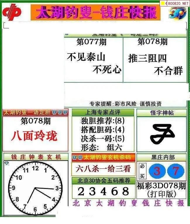 钱庄报26078期钱庄快报一句定三码图谜