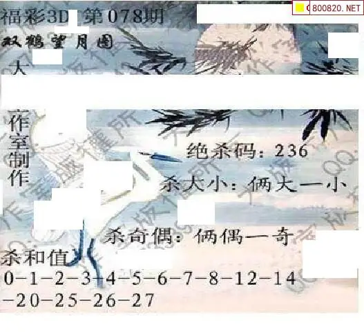 24 2026078期智多星福彩3d杀码图谜-天