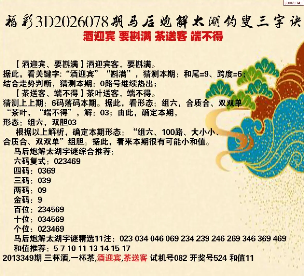 20 26年078期[小宏]解3d太湖谜要满