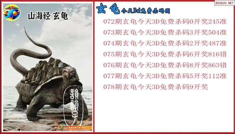玄龟2026078期今天3d免费杀码图(原创)