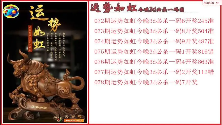 运势如虹2026078期今晚3d必杀一码图(原创)