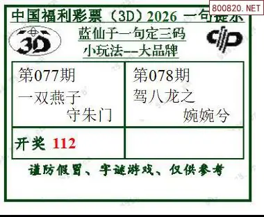 14 2026078期蓝仙子一句定三码3d图谜