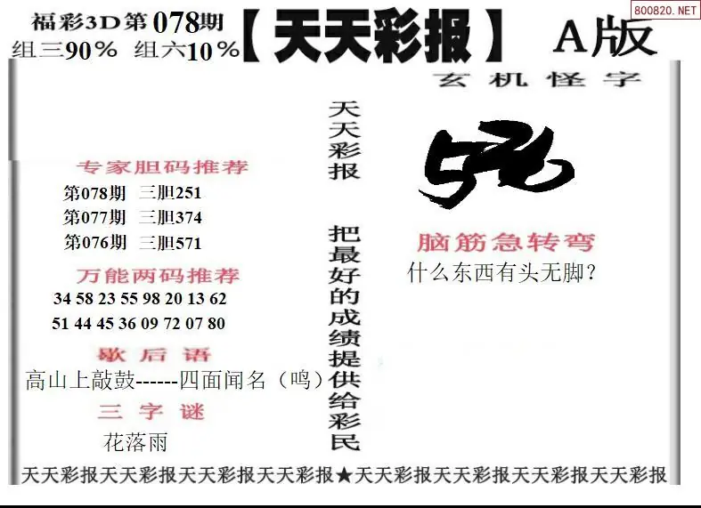 26078期福彩3D天天彩报A版 天天彩报B版