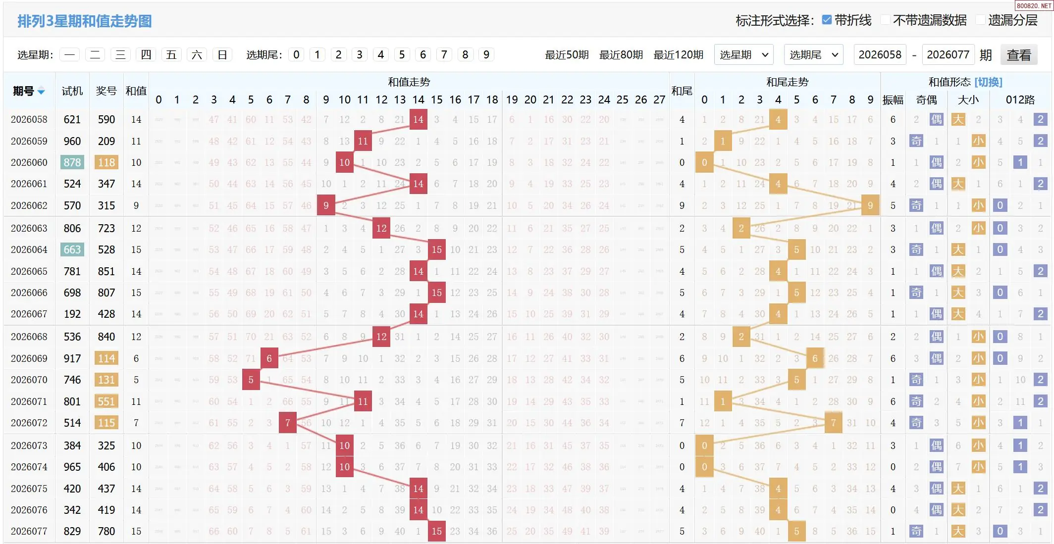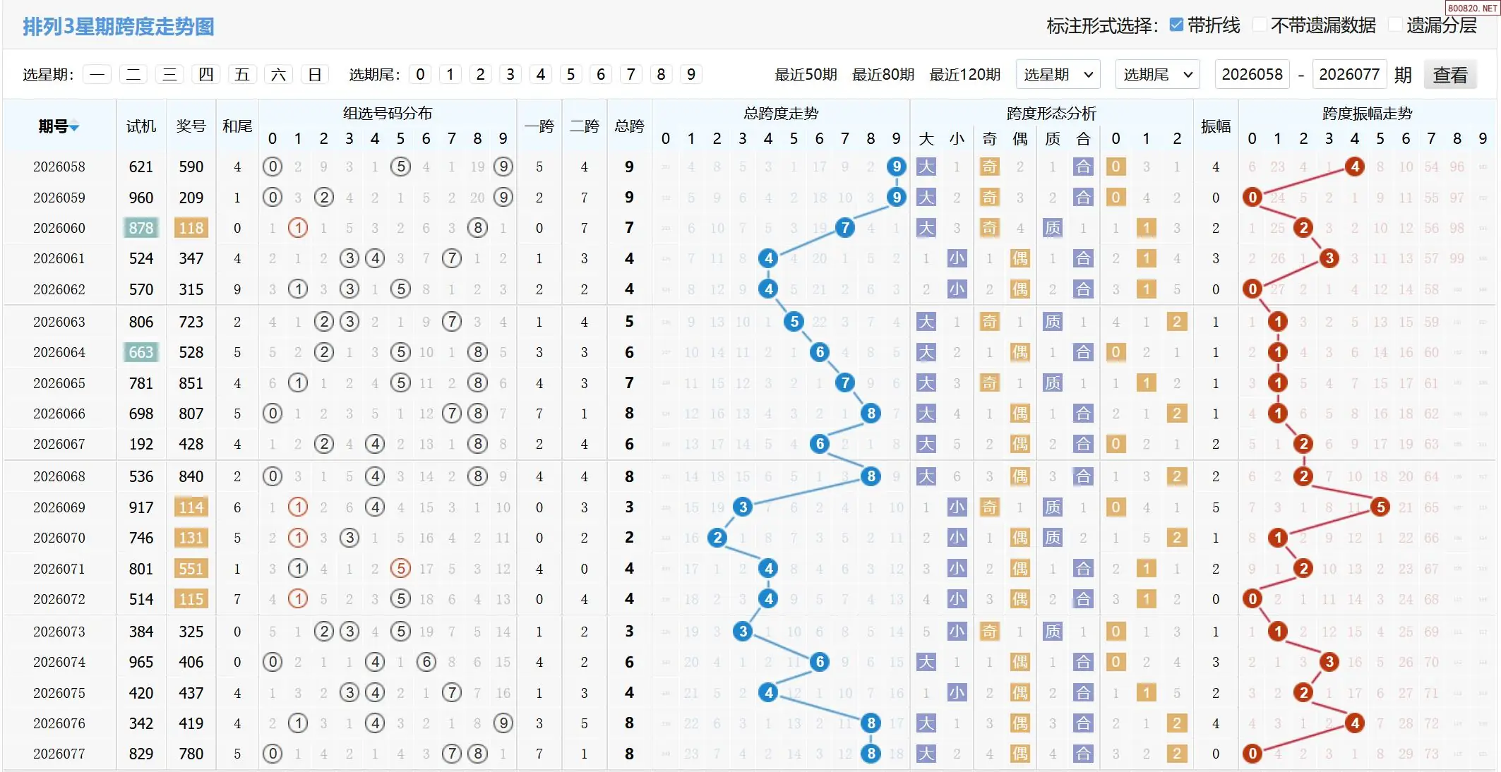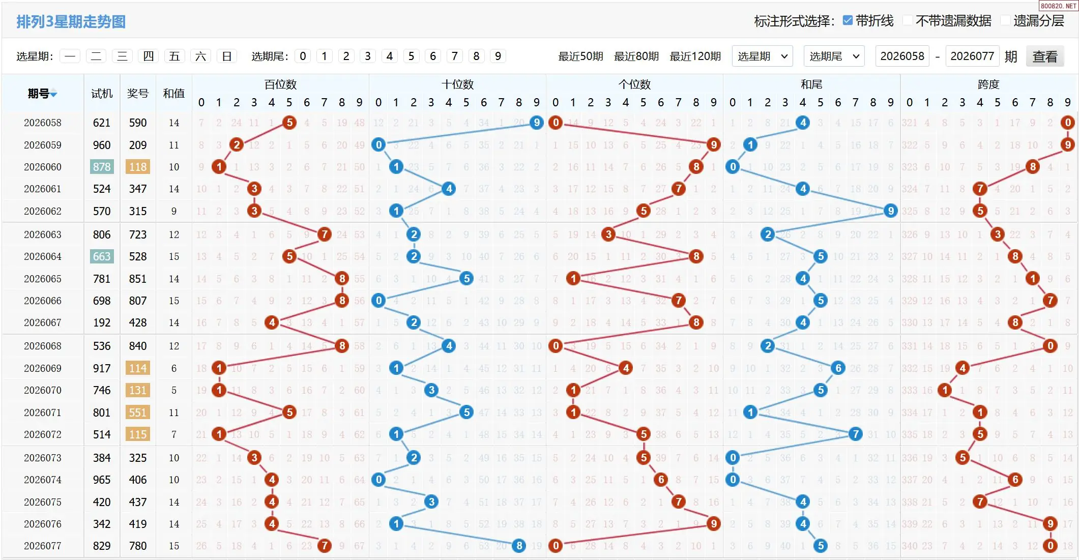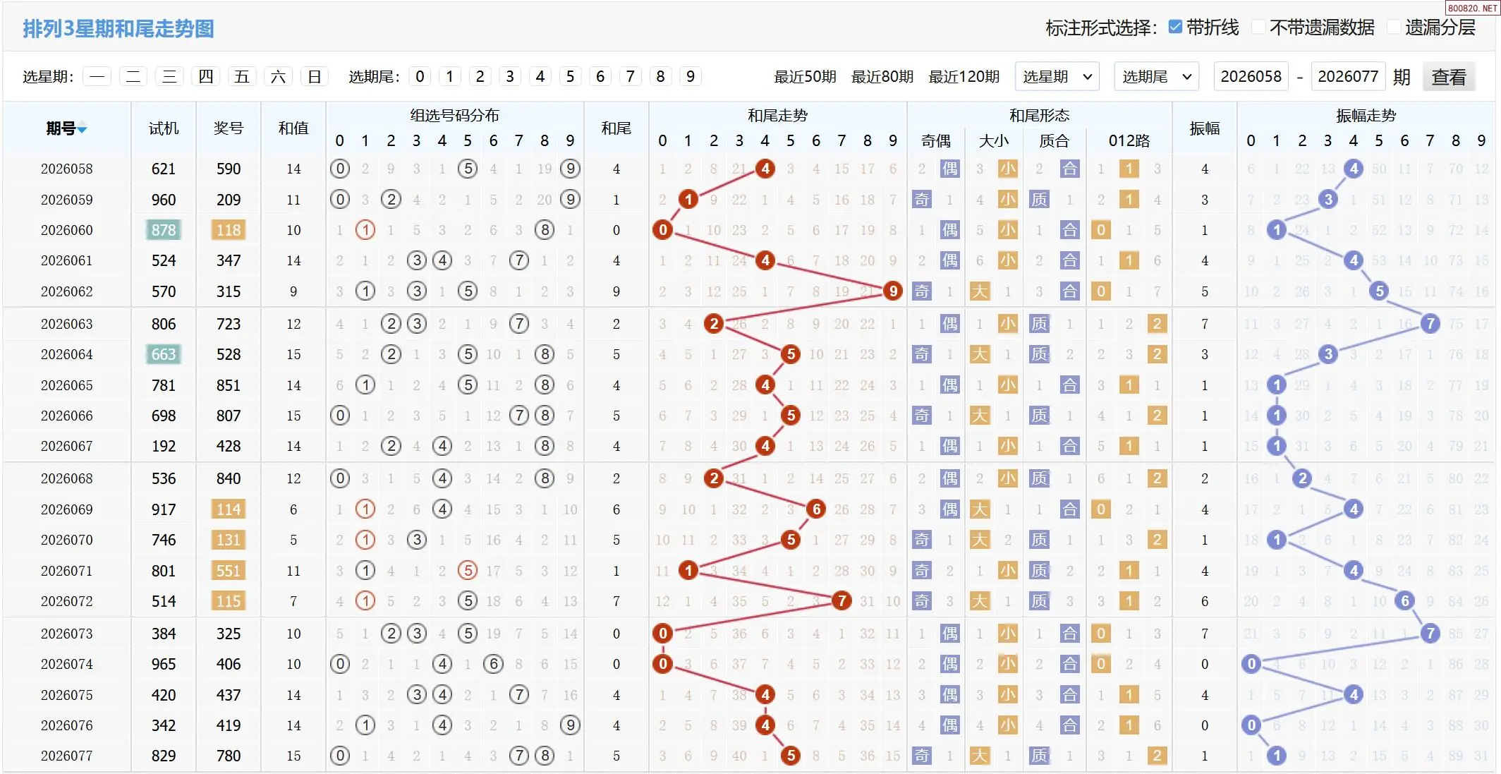 2026078期体彩P3基本走势图如下: