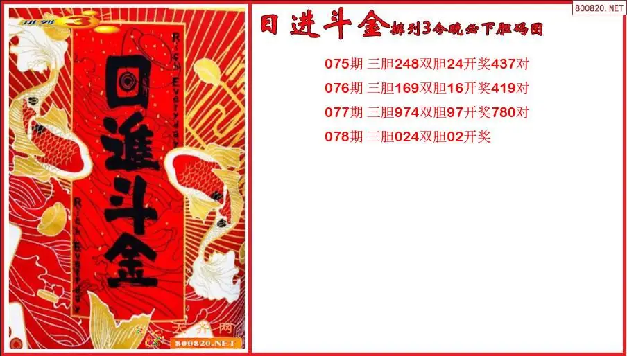 日进斗金2026078期排列3今晚必下胆码图(原创)