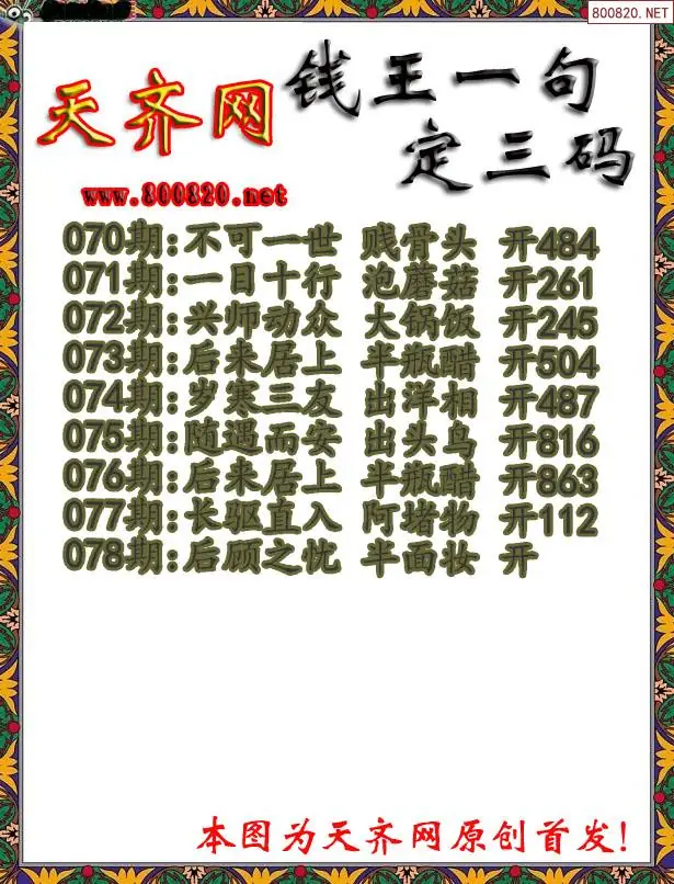 078期钱王3D一句定三码字图谜