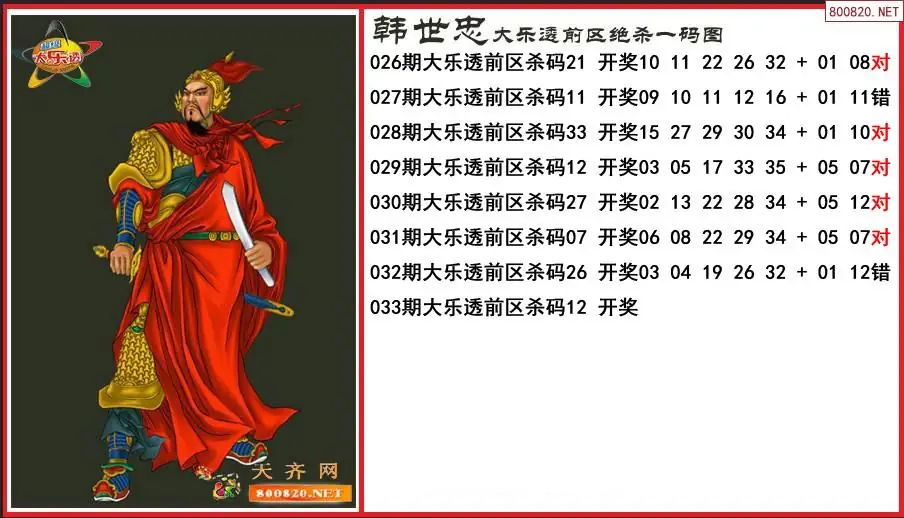 韩世忠2026033期大乐透前区绝杀一码图-原创