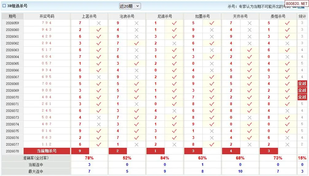 福彩3d26年078期澳客专家杀组选号码