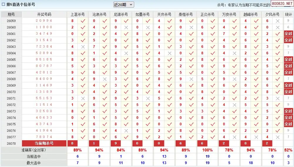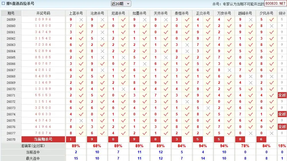澳客彩票26年体彩P5078期十大大专家杀号