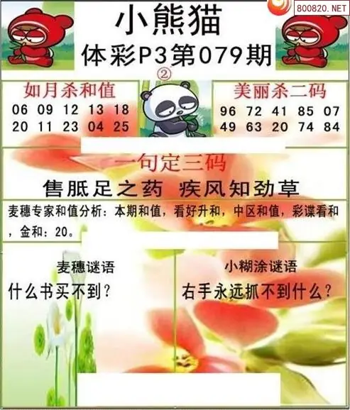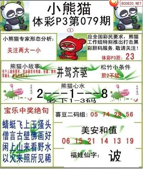 26079期体彩P3小熊猫图迷