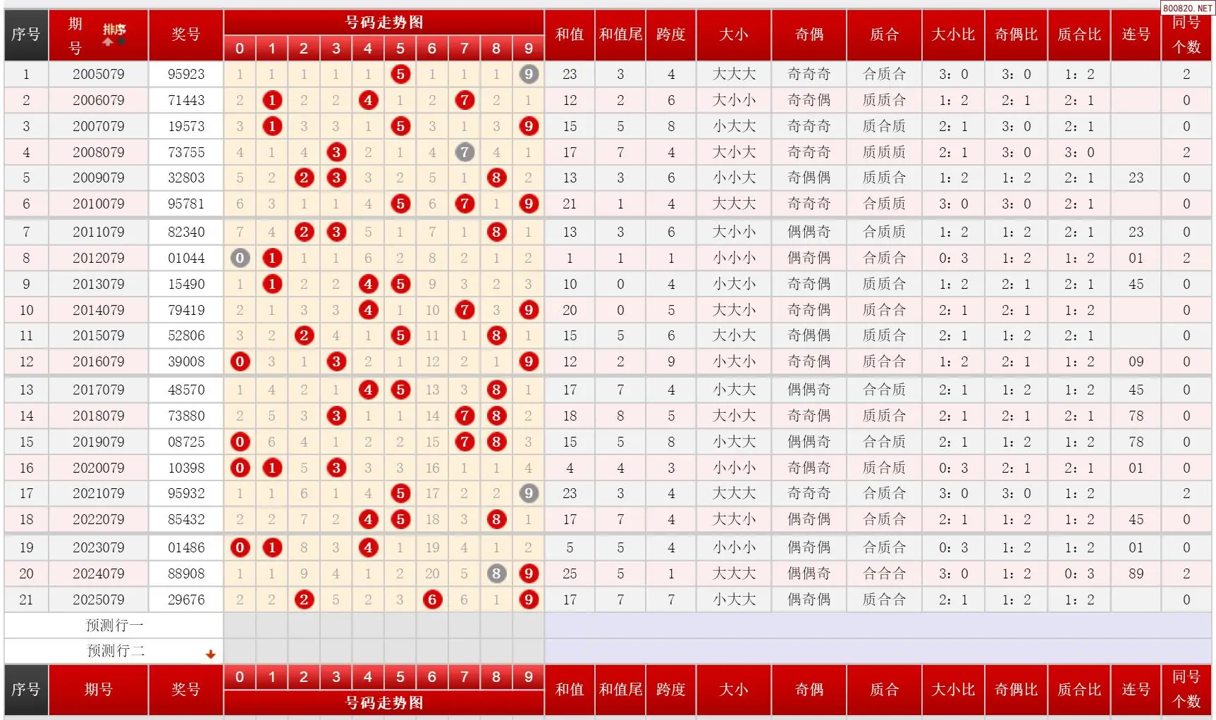 2 079期体彩P3历史同期对比图表+近期