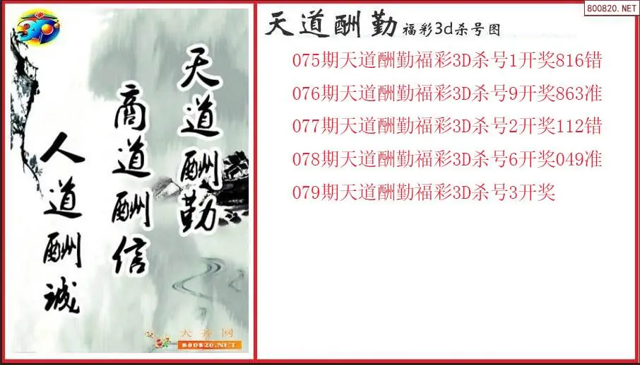 天道酬勤2026079期福彩3d杀号图(原创)