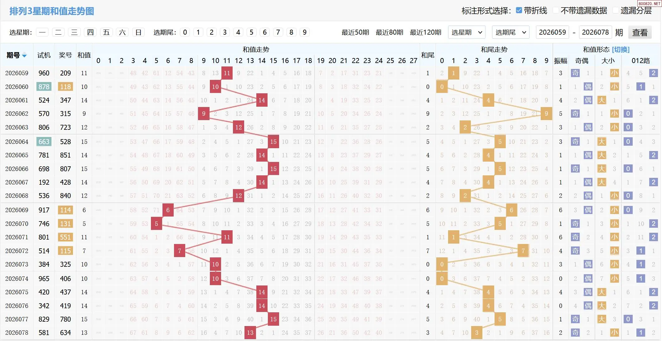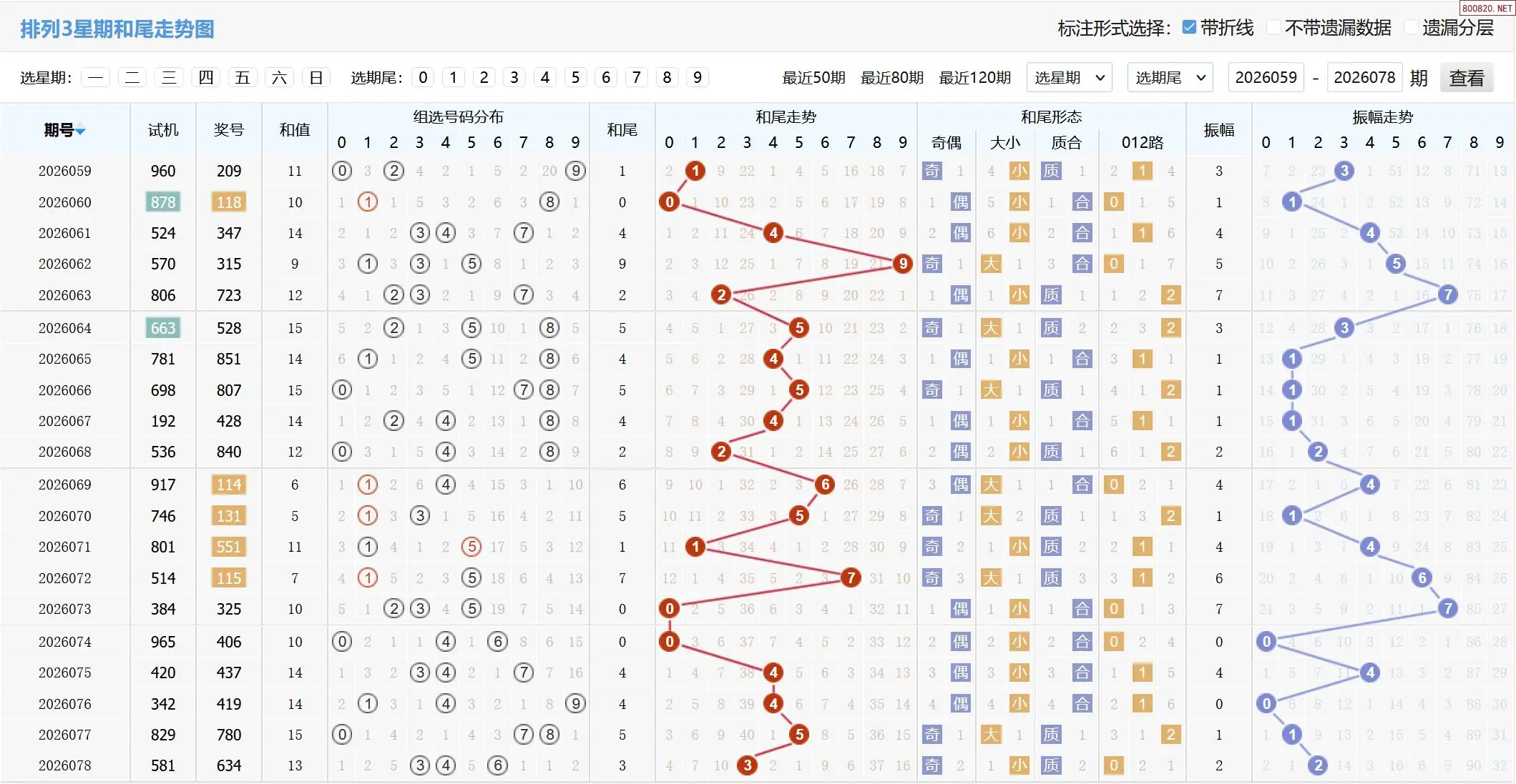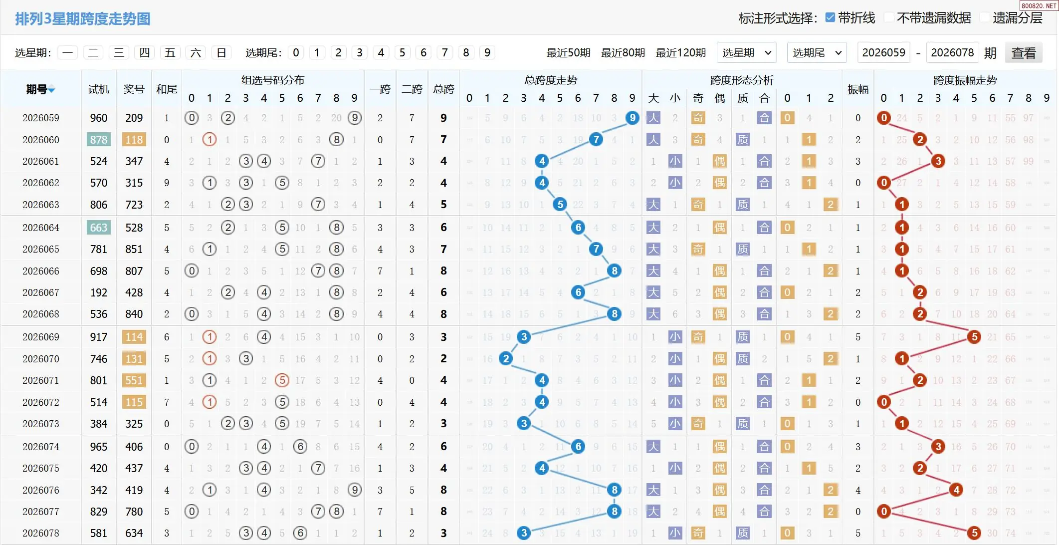 2026079期体彩P3基本走势图如下: