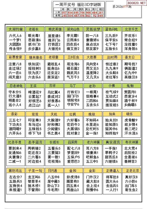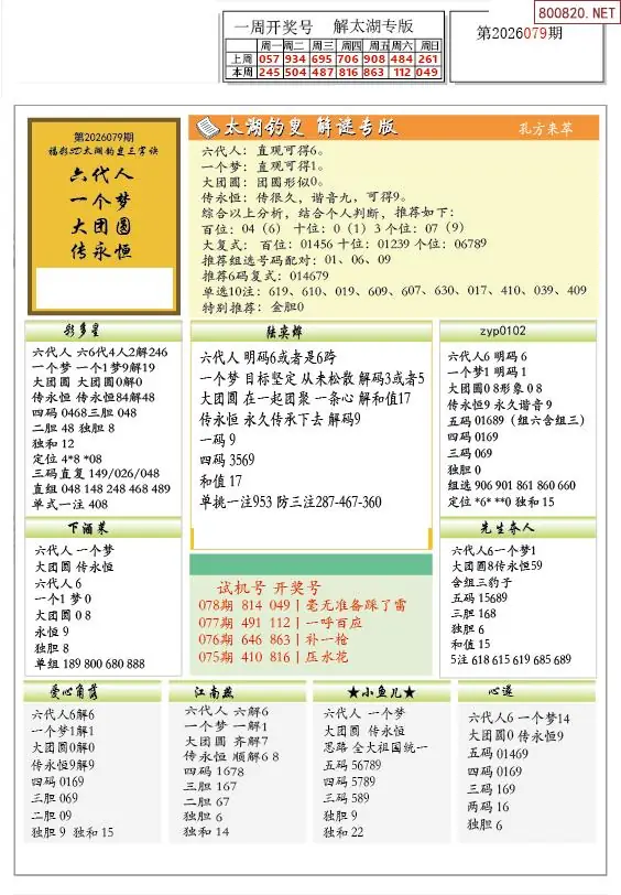 26年079期解太湖3d字图迷汇总彩报