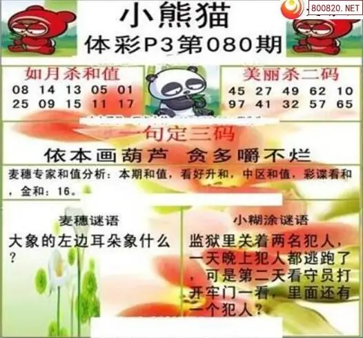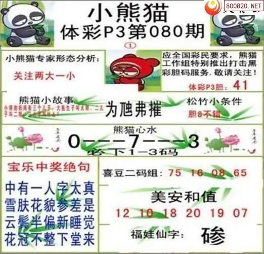 26080期体彩P3小熊猫图迷