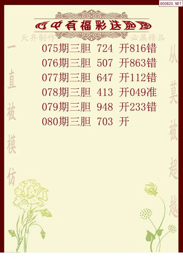 2026年080期心中有福福彩送胆图谜(天齐网原创)