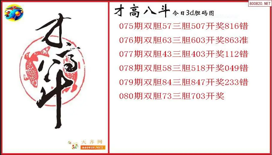 才高八斗2026080期今日3d胆码图(原创)