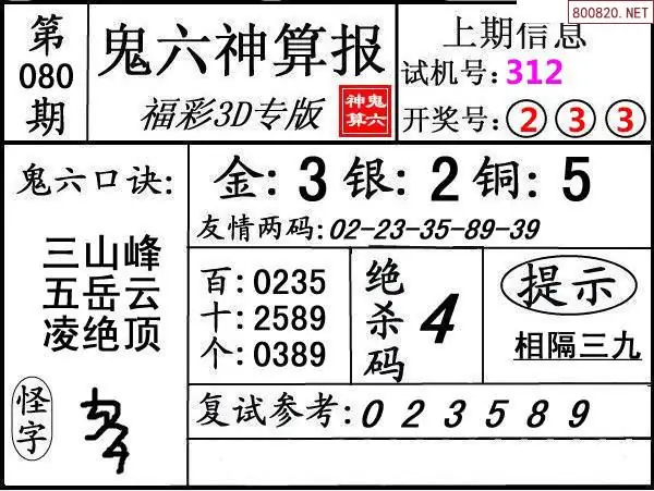 鬼六图26080期鬼六神算报+鬼六胆码图迷